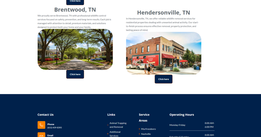 Another challenge was building authority across multiple cities and service areas. Wildlife removal is highly location-driven, and ranking in multiple towns requires a structured content and SEO approach. Without optimized service pages and a clear strategy, expansion into surrounding markets was difficult.