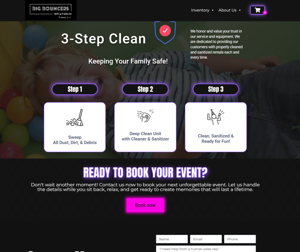 Another challenge was creating a booking experience that felt simple and trustworthy. Parents and event planners often compare multiple rental companies, and a website plays a major role in shaping their first impression. The site needed to clearly communicate safety, professionalism, and reliability while making it easy for visitors to take the next step.